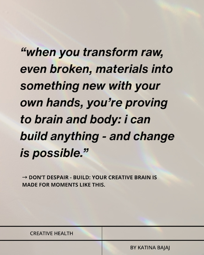 Don't despair - build. Your creative brain is made for times like these.
